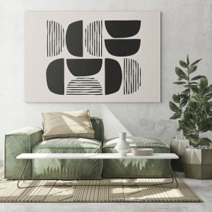 Obraz na szkle - Geometria z półkolami i liniami w czerni na jasnym tle - 70x100cm - Połowiczne układy - Nowoczesna dekoracja ścienna do salonu i sypialni ARTTOR