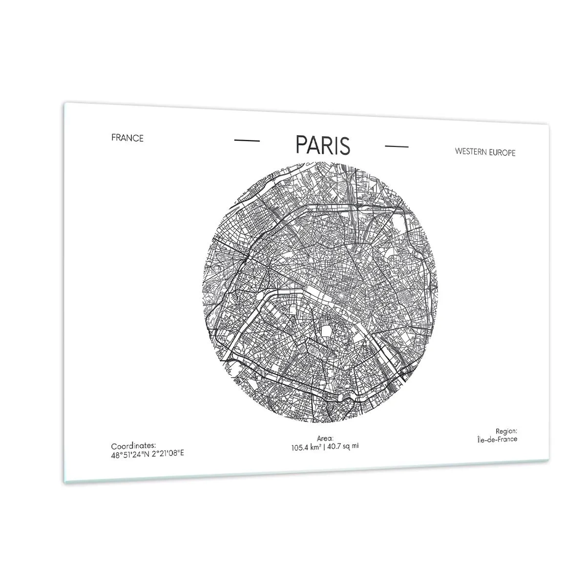 Obraz na szkle - Mapa Paryża w okrągłej formie czarno-białej ilustracji - 120x80cm - Anatomia Paryża - Nowoczesna dekoracja ścienna do salonu, kuchni i sypialni ARTTOR