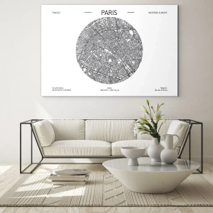 Obraz na szkle - Mapa Paryża w minimalistycznym stylu - 80x120cm - Anatomia Paryża - Nowoczesna dekoracja ścienna do salonu i sypialni ARTTOR