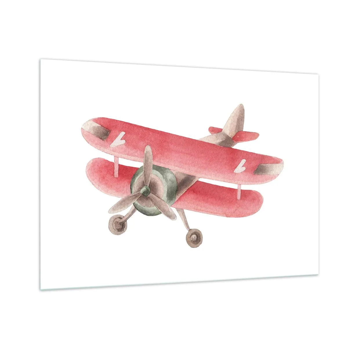 Obraz na szkle - Dwupłatowiec w stylu retro w odcieniach czerwieni - 100x70cm - Gotowy do wysokich lotów - Nowoczesna dekoracja ścienna do salonu, kuchni i sypialni ARTTOR