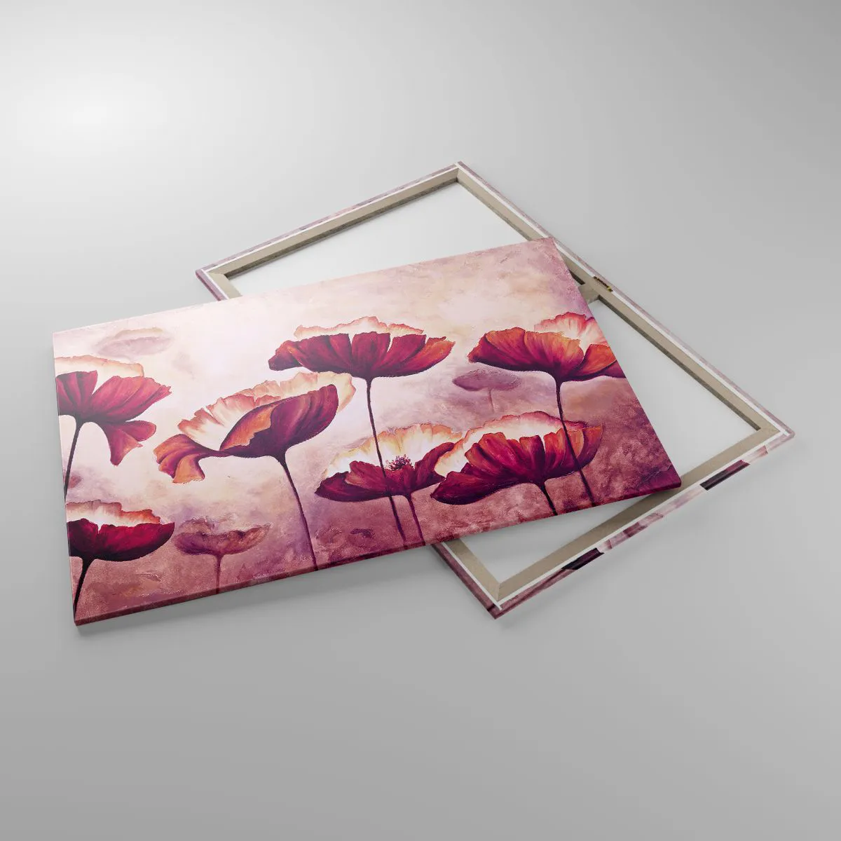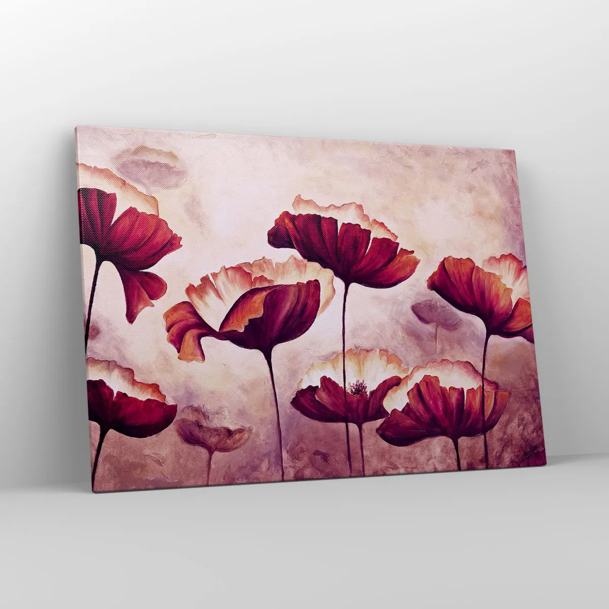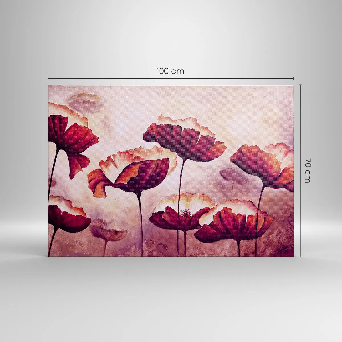 Obraz na płótnie - Kwiaty w odcieniach czerwieni i bieli na subtelnym tle - 100x70cm - Płatek czerwony i biały - Nowoczesna dekoracja ścienna do salonu, kuchni i sypialni ARTTOR