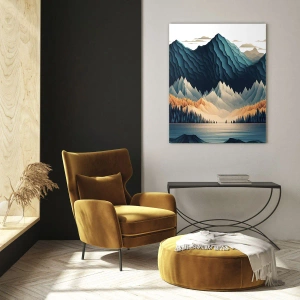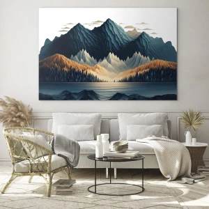 Obraz na ścianę – Pejzaż górski doskonały – Stylizowany krajobraz górski z lasem i jeziorem