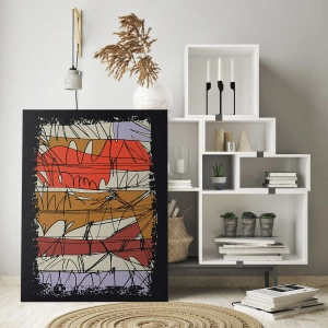 Obraz na szkle - Graficzna abstrakcja z kolorowymi pasami i czarnymi liniami - 120x80cm - Kompozycja spontaniczna - Nowoczesna dekoracja ścienna do salonu, kuchni i sypialni ARTTOR