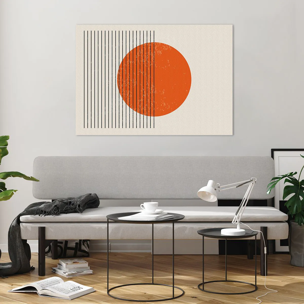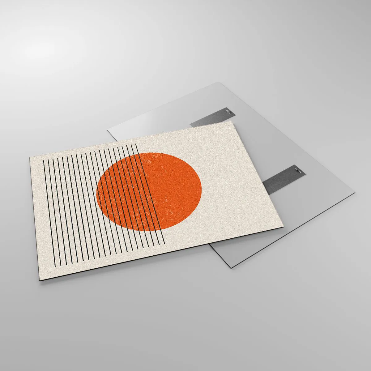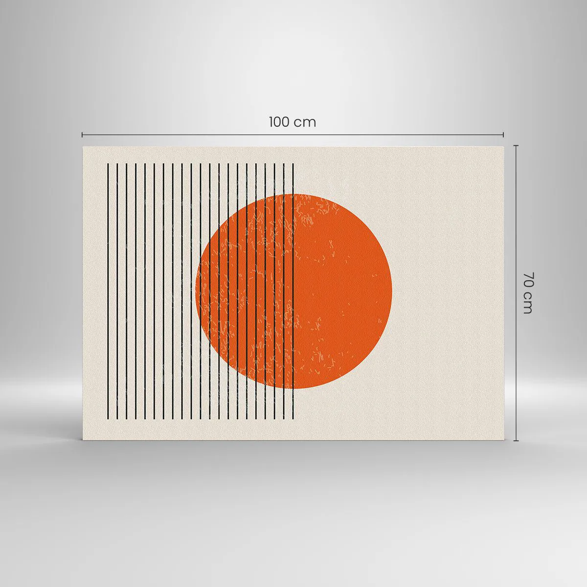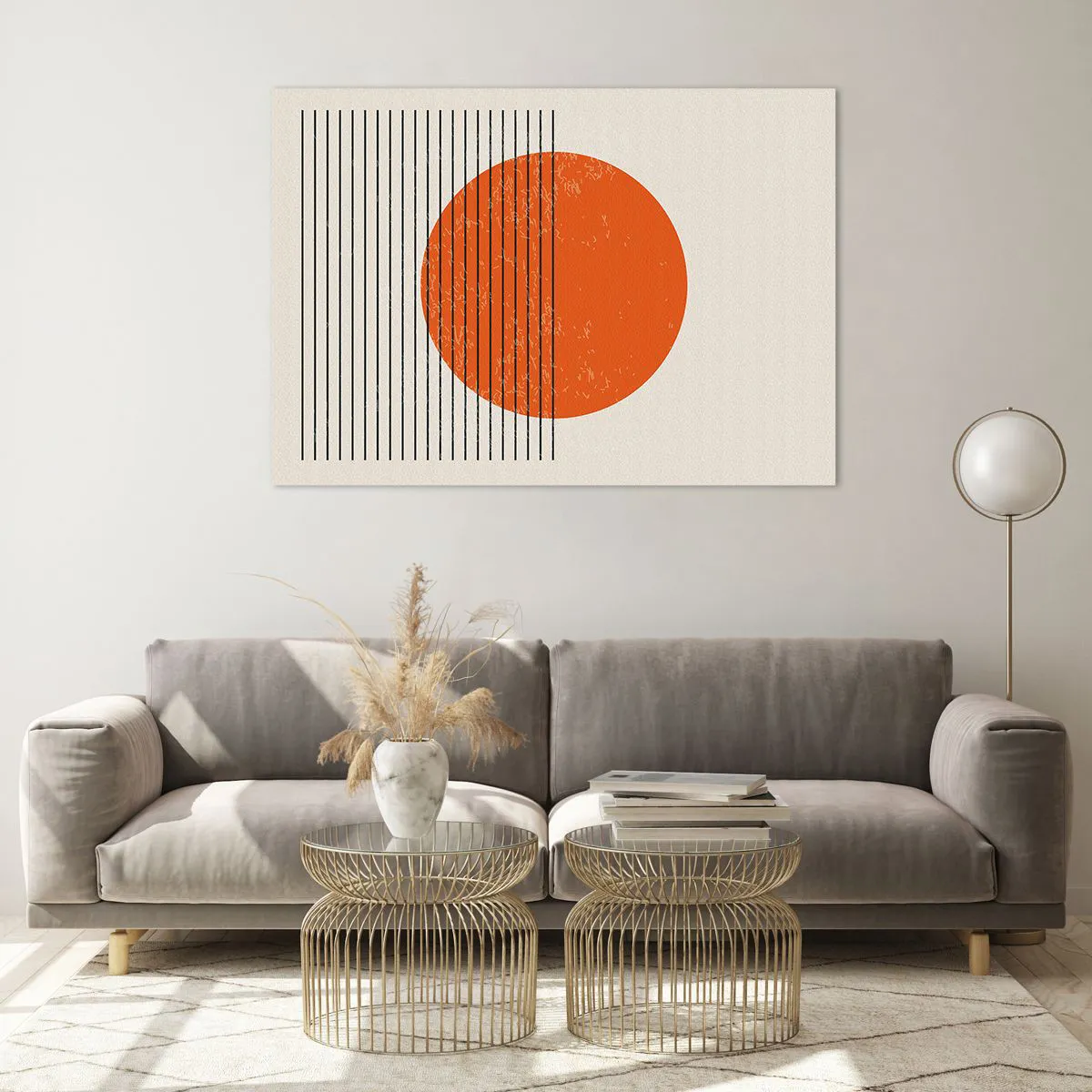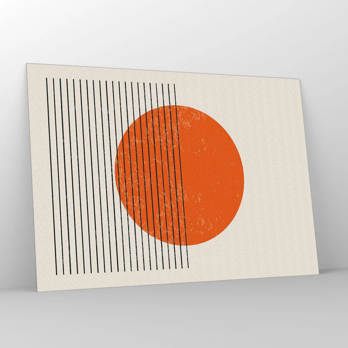 Obraz na szkle - Geometryczna kompozycja z pomarańczowym kołem i liniami - 100x70cm - Zawsze słońce - Nowoczesna dekoracja ścienna do salonu, kuchni i sypialni ARTTOR