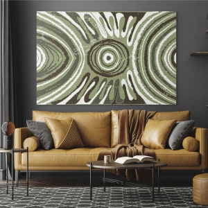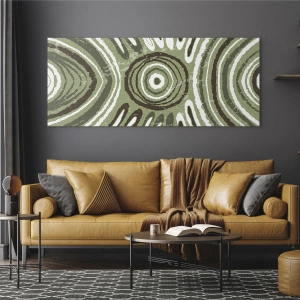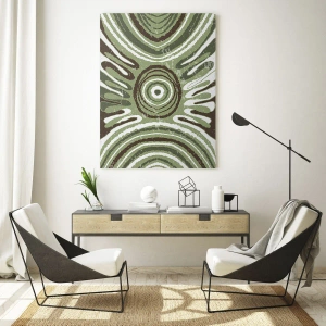 Obraz na szkle - Zielone koncentryczne kręgi i abstrakcyjne linie - 50x70cm - Eksplozja emocji - Nowoczesna dekoracja ścienna do salonu, kuchni i sypialni ARTTOR