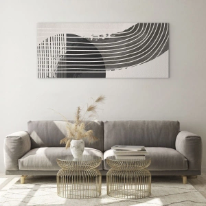 Obraz na szkle - Czarno-biała abstrakcja z liniami i geometrycznymi kształtami - 100x70cm - Tam i z powrotem - Nowoczesna dekoracja ścienna do salonu, kuchni i sypialni ARTTOR