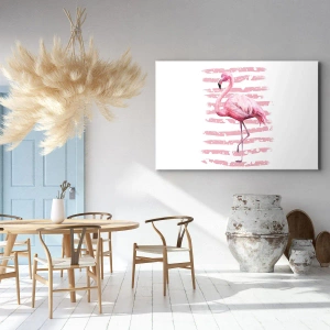 Obraz na płótnie - Flaming na różowym tle w minimalistycznym stylu - 120x80cm - Z godnościa, choć na różowo - Nowoczesna dekoracja ścienna do salonu, kuchni i sypialni ARTTOR