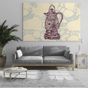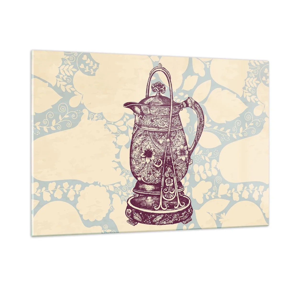 Obraz na szkle - Zdobiony dzbanek w stylu vintage na jasnym tle z ornamentem - 120x80cm - Uroda codzienności - Nowoczesna dekoracja ścienna do salonu, kuchni i sypialni ARTTOR