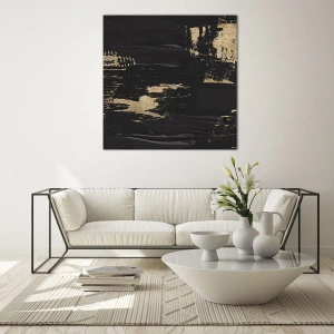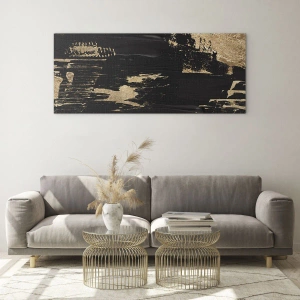 Obraz na szkle - Abstrakcyjna kompozycja w odcieniach czerni i złota - 140x50cm - Ślad dotyku - Nowoczesna dekoracja ścienna do salonu i sypialni ARTTOR