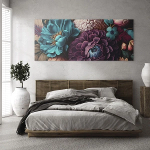 Obraz na szkle - Bogata kompozycja kwiatów w intensywnych barwach - 100x70cm - Natura na bogato - Nowoczesna dekoracja ścienna do salonu, kuchni i sypialni ARTTOR