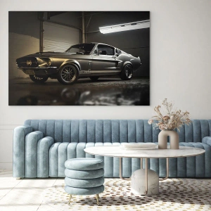 Obraz na szkle - Klasyczny samochód w garażu w stylu retro - 80x120cm - Powrót do przeszłości - Nowoczesna dekoracja ścienna do salonu i sypialni ARTTOR