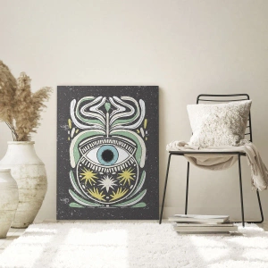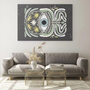 Obraz na szkle - Graficzne oko z ornamentyką plemienną na ciemnym tle - 50x70cm - Plemienne rytuały - Nowoczesna dekoracja ścienna do salonu, kuchni i sypialni ARTTOR