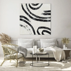 Obraz na szkle - Czarno-białe abstrakcyjne linie na jasnym tle - 80x120cm - W pół zatrzymany - Nowoczesna dekoracja ścienna do salonu i sypialni ARTTOR