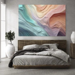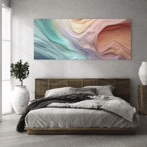 Obraz na szkle - Kolorowa abstrakcja przypominająca fale i skały - 100x70cm - Tęczowa fala - Nowoczesna dekoracja ścienna do salonu, kuchni i sypialni ARTTOR