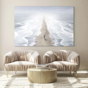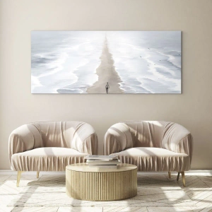 Obraz na szkle - Postać na samotnej drodze wśród rozległego krajobrazu wodnego - 70x100cm - Jasna przyszłość - Nowoczesna dekoracja ścienna do salonu i sypialni ARTTOR