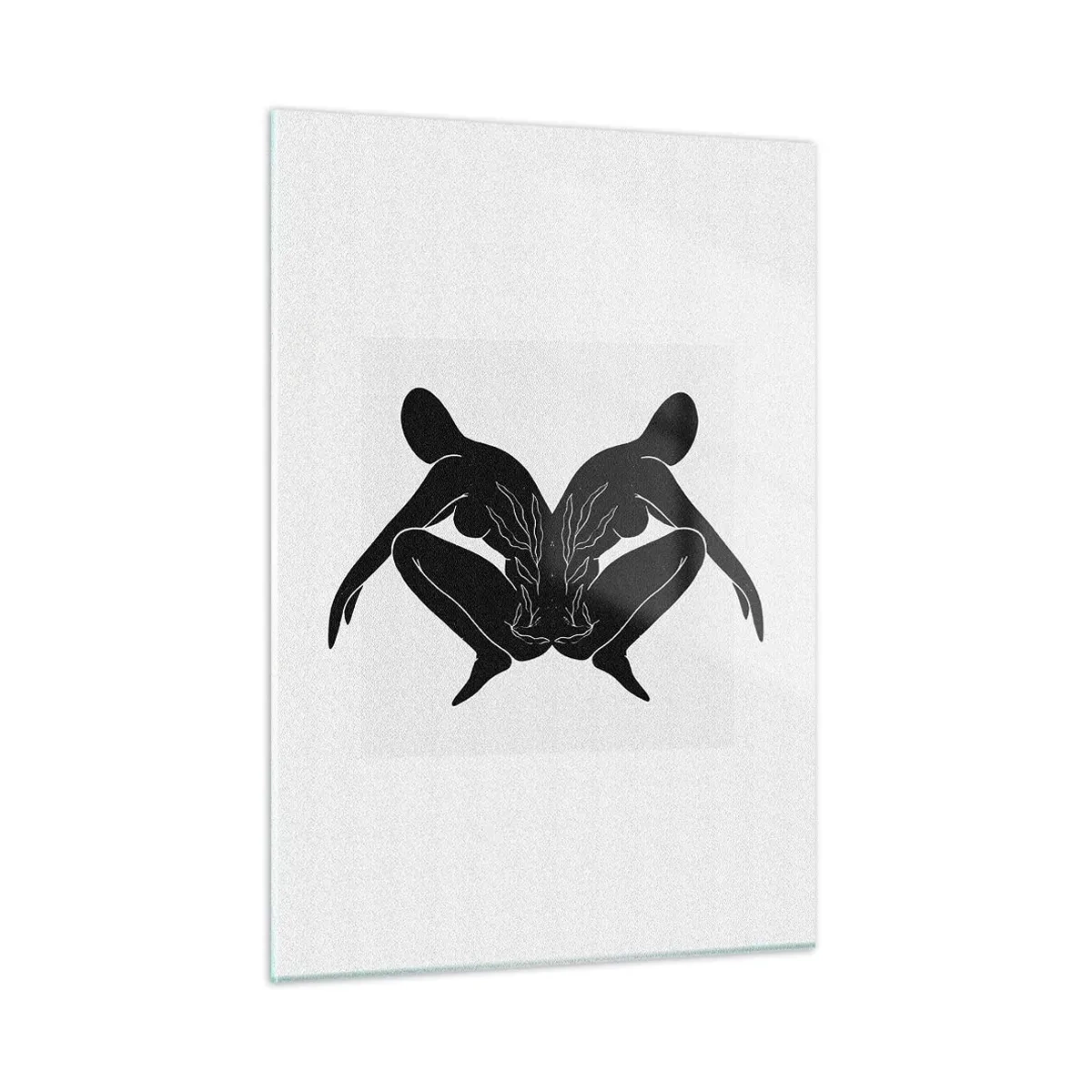Obraz na szkle - Czarne postacie tworzące symetryczne serce na białym tle - 50x70cm - Wspólna dusza - Nowoczesna dekoracja ścienna do salonu, kuchni i sypialni ARTTOR