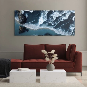 Obraz na szkle - Widok z lotu ptaka na fale rozbijające się o brzeg - 70x100cm - Otulone falami - Nowoczesna dekoracja ścienna do salonu i sypialni ARTTOR