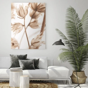 Obraz na szkle - Delikatne wysuszone kwiaty w odcieniach beżu i brązu - 70x100cm - Dzwonią na koniec lata - Nowoczesna dekoracja ścienna do salonu i sypialni ARTTOR