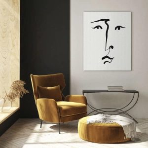 Obraz na szkle - Minimalistyczna abstrakcyjna twarz wykonana czarną linią na jasnym tle - 80x120cm - Portret jedną kreską - Nowoczesna dekoracja ścienna do salonu i sypialni ARTTOR