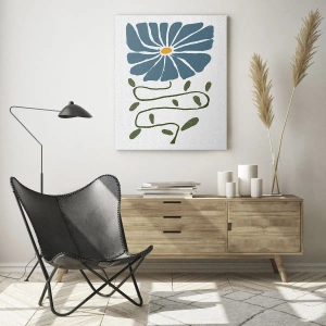 Obraz na szkle - Niebieski kwiat z wijącą się zieloną łodygą na jasnym tle - 70x100cm - Gałązką do kwiatu - Nowoczesna dekoracja ścienna do salonu i sypialni ARTTOR