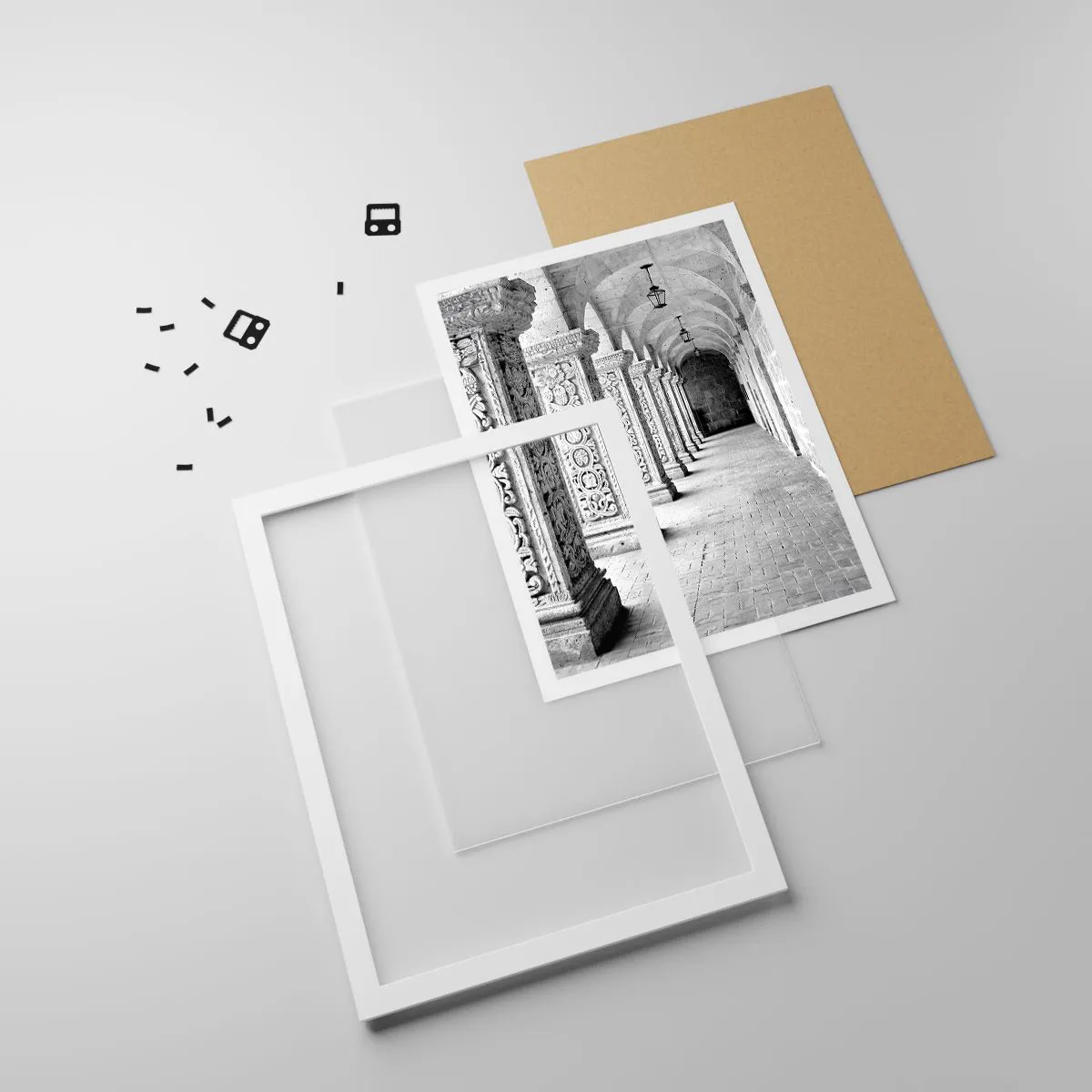 Każda ramka posiada zamocowane do ramy dwie zawieszki dzięki czemu jest gotowy do powieszenia na ścianę. Ramkę można powiesić zarówno pionowo jak i poziomo