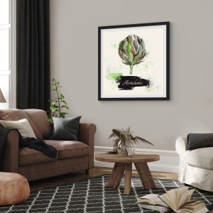 Plakat w czarnej ramie - Akwarelowa ilustracja karczocha na jasnym tle - 50x70cm - Eviva warzywa! - Nowoczesna dekoracja ścienna do salonu i sypialni ARTTOR