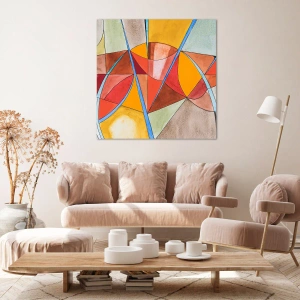 - Kolorowa abstrakcyjna kompozycja z dominującymi geometrycznymi formami. Żywe barwy i dynamiczna stylistyka dodają wnętrzom energii i kreatywności.