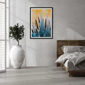 Plakat w czarnej ramie - Malarska kompozycja trzcin w ciepłym świetle - 50x70cm - Chłód wody, słońca żar - Nowoczesna dekoracja ścienna do salonu i sypialni ARTTOR