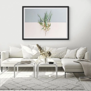 Plakat w czarnej ramie - Gałązka eukaliptusa na pastelowym tle - 50x70cm - Pastelowa subtelność - Nowoczesna dekoracja ścienna do salonu i sypialni ARTTOR