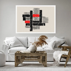 Plakat - Geometryczna abstrakcja w czerni, czerwieni i beżu - 50x70cm - Czerwone i czarne - Nowoczesna dekoracja ścienna do salonu, kuchni i sypialni ARTTOR