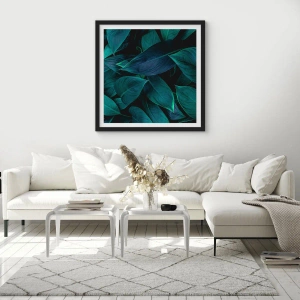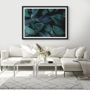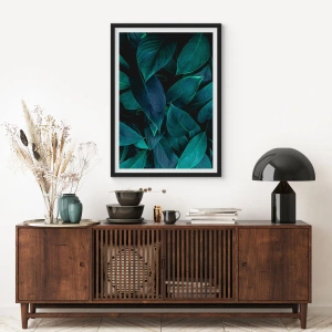 Plakat w czarnej ramie - Ciemnozielone liście z subtelnym podświetleniem - 50x70cm - Zieleń sama w sobie - Nowoczesna dekoracja ścienna do salonu i sypialni ARTTOR