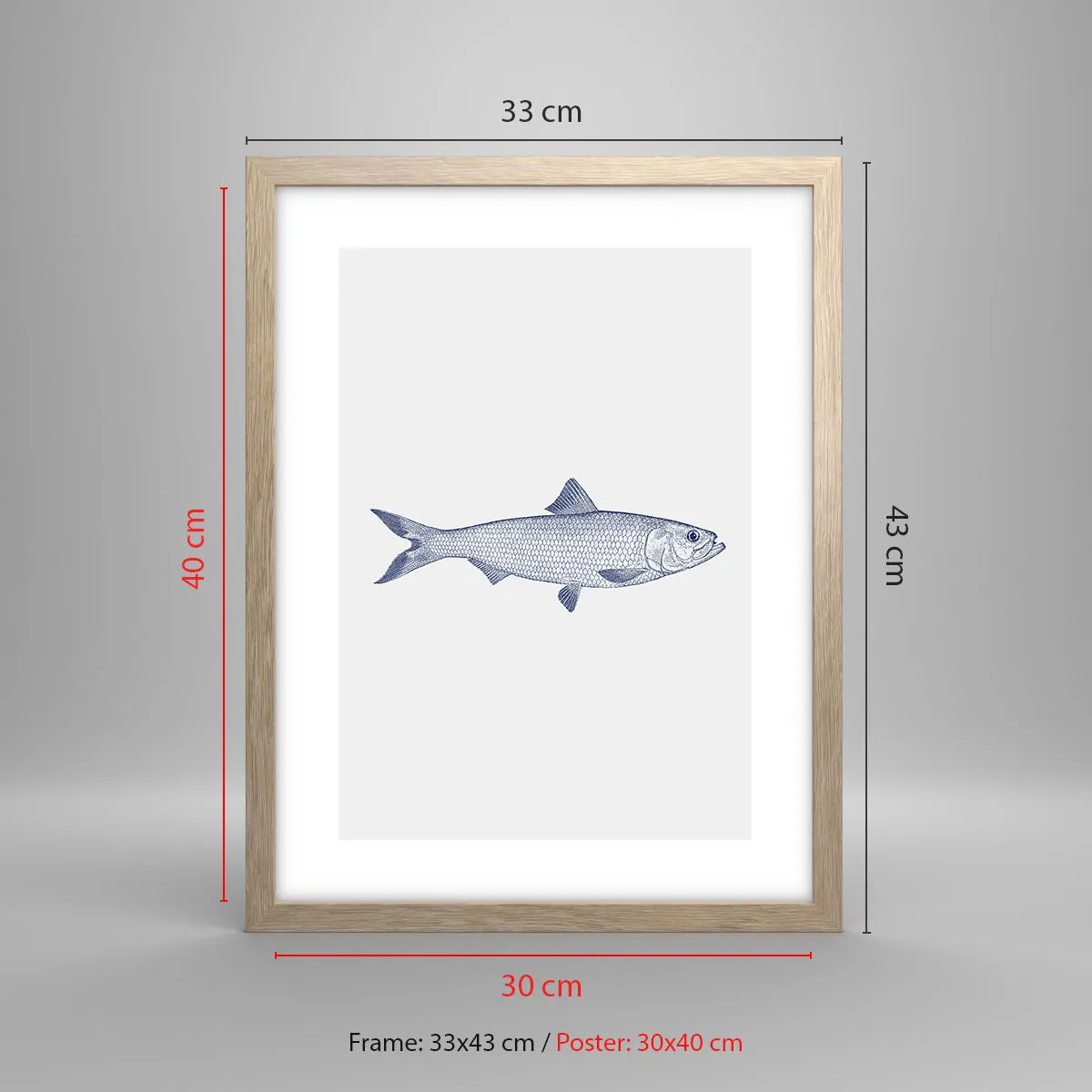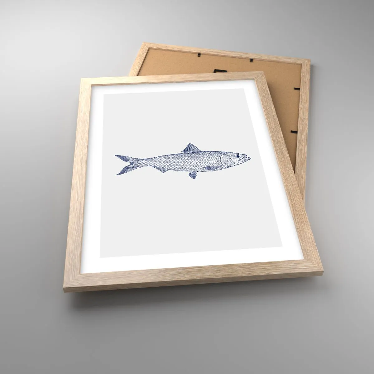 Plakat w ramie jasny dąb - Pozdrowienia z północnych mórz - 30x40 cm