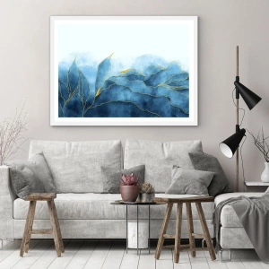 Plakat w białej ramie - Błękit w złocie - 70x100 cm