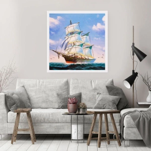 Plakat - Żaglowiec na otwartym morzu pod błękitnym niebem - 100x70cm - Dumnie z wiatrem - Nowoczesna dekoracja ścienna do salonu i sypialni ARTTOR