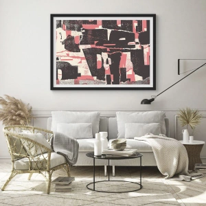 Plakat w czarnej ramie - Abstrakcyjna kompozycja w odcieniach różu i brązu - 70x50cm - Cały ten zgiełk - Nowoczesna dekoracja ścienna do salonu i sypialni ARTTOR