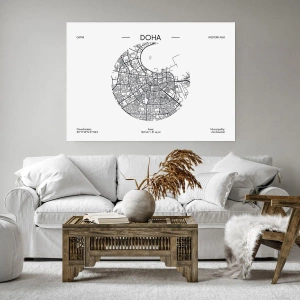 Plakat - Minimalistyczna mapa Dohy w czarno-białej kolorystyce z precyzyjnymi detalami - 100x70cm - Anatomia Dohy - Nowoczesna dekoracja ścienna do salonu i sypialni ARTTOR