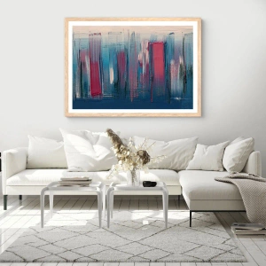 Plakat w ramie jasny dąb - Kompozycja wertykalna w błękicie i czerwieni - 91x61 cm