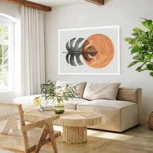Plakat - Liść monstery i złote koło na jasnym tle - 100x70cm - Zawsze słońce - Nowoczesna dekoracja ścienna do salonu i sypialni ARTTOR