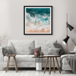 Plakat w czarnej ramie - Abstrakcyjna fala morska w odcieniach turkusu i beżu - 50x70cm - Morskie opowieści - Nowoczesna dekoracja ścienna do salonu i sypialni ARTTOR