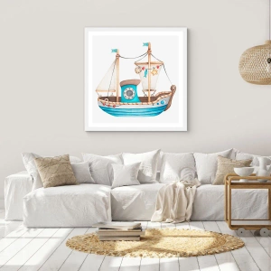 Plakat w białej ramie - Ahoj, przygodo! - 50x50 cm