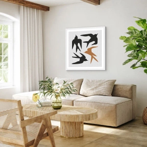 Plakat w białej ramie - Jaskółcze zabawy - 50x50 cm