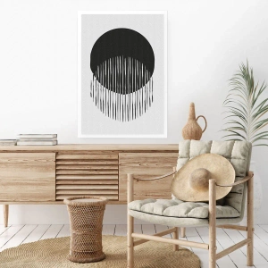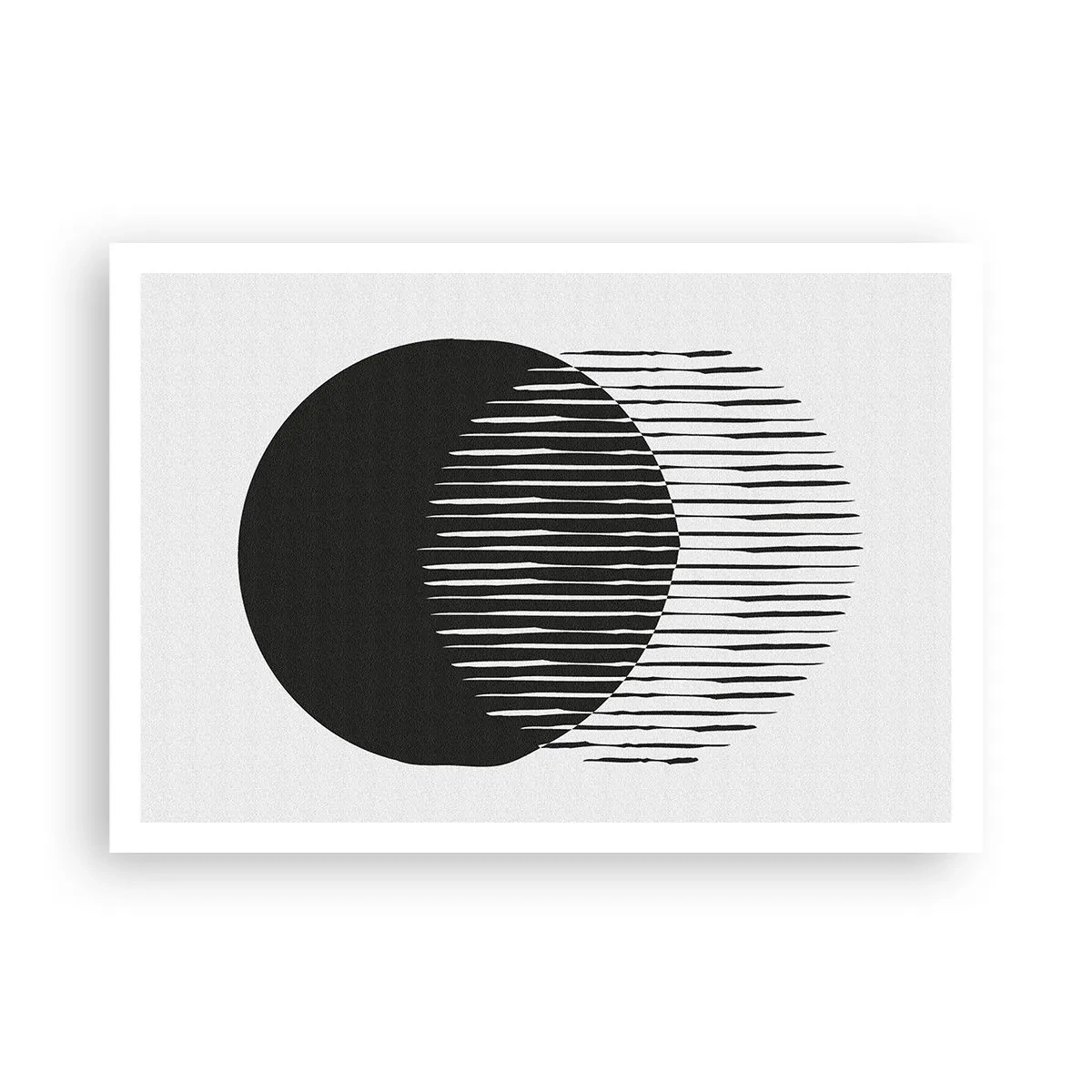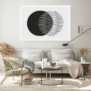 Plakat - Dwa nakładające się koła z liniami w czerni i bieli - 100x70cm - Jego alter ego - Nowoczesna dekoracja ścienna do salonu i sypialni ARTTOR