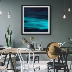 Plakat w czarnej ramie - Subtelne abstrakcyjne fale w ciemnych odcieniach błękitu - 100x70cm - Popłyń z nurtem - Nowoczesna dekoracja ścienna do salonu i sypialni ARTTOR