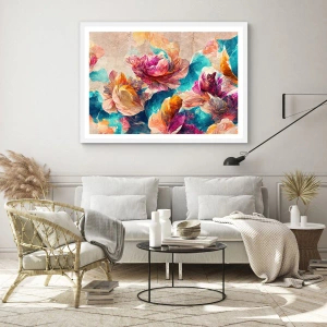 Plakat w białej ramie - Barwny przepych bukietu - 61x91 cm
