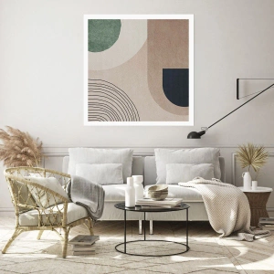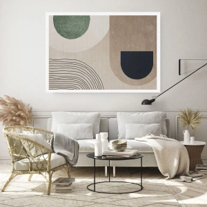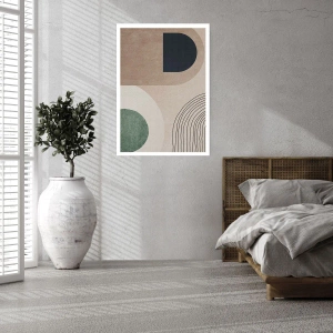 Plakat - Geometryczne kształty w odcieniach beżu i zieleni - 100x70cm - Łagodność owalu - Nowoczesna dekoracja ścienna do salonu i sypialni ARTTOR