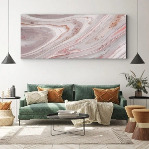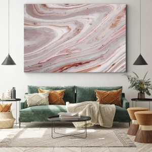 Obraz na płótnie - Abstrakcyjne fale w delikatnych odcieniach różu i beżu - 120x80cm - Różowy w płynie - Nowoczesna dekoracja ścienna do salonu, kuchni i sypialni ARTTOR