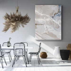 - Obraz na płótnie przedstawiający abstrakcyjny wzór w odcieniach bieli, błękitu i ziemistych kolorów. Idealnie pasuje do nowoczesnych wnętrz, wprowadzając subtelną harmonię i elegancję.