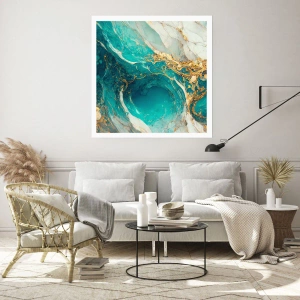 Plakat - Abstrakcyjna kompozycja w odcieniach turkusu i złota - 100x70cm - Kompozycja z żyłami złota - Nowoczesna dekoracja ścienna do salonu i sypialni ARTTOR