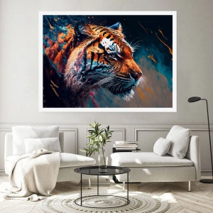 Plakat - Dynamiczny portret tygrysa w artystycznym stylu - 50x70cm - Dzikie piękno - Nowoczesna dekoracja ścienna do salonu, kuchni i sypialni ARTTOR