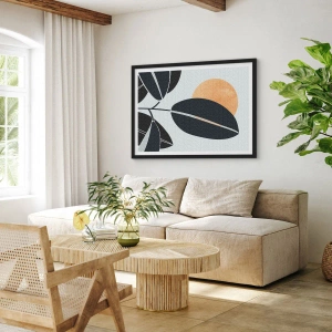 Plakat w czarnej ramie - Minimalistyczna kompozycja liści na tle słońca - 50x70cm - Dzień gorącego lata - Nowoczesna dekoracja ścienna do salonu i sypialni ARTTOR